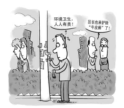 當(dāng)日上午,濟(jì)南經(jīng)十路槐蔭段,一支特殊的勞動隊伍吸引了眾多行人的目光。從擔(dān)山立交橋到槐蔭區(qū)政務(wù)中心,近4公里路段,沿路看去,都是忙碌的工作人員。他們有的擦護(hù)欄,有的鏟除非法小廣告,有的掃綠化帶里的污物,有的蹲下身擦路面上的痰漬。旁邊幾位健身的老人見狀,主動加入到了清理垃圾的行列。在兒童醫(yī)院東側(cè),槐蔭區(qū)區(qū)長楊峰手拿一個噴壺和一把小鏟子,用心清理非法小廣告?吹揭患译娦艩I業(yè)廳前的電線桿上貼滿小廣告,他先是用噴壺噴水,把紙弄濕,然后用小鏟子快速鏟凈。不多會兒,桿子上的非法小廣告消失殆盡。接下來,他又用抹布把桿子擦得干干凈凈。