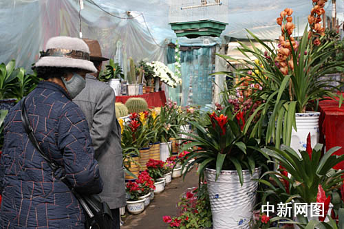 中新社拉薩二月十四日電 題:藏歷新年前夕拉薩探花:情人花不敵祈年花