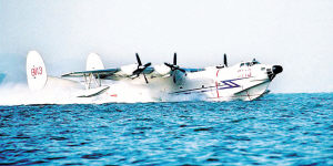 這是一架外形奇特的飛機(jī):機(jī)翼兩側(cè)各垂有一個巨大的橄欖球狀物,機(jī)腹是傾斜的切割面形狀,好似巨輪的船身。看到記者一臉疑惑,值班領(lǐng)導(dǎo)、政委張汝翼為記者指點(diǎn)迷津:“這就是我們部隊(duì)號稱‘海天鯤鵬’的水上飛機(jī),是全軍僅有的一種特殊機(jī)種,不僅能航行在遼闊的江河湖海,還能馳騁在藍(lán)天之上,機(jī)翼兩側(cè)配有保持浮力和平衡的‘浮筒’……”