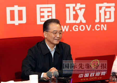 國(guó)際先驅(qū)導(dǎo)報(bào)記者楊眉發(fā)自北京 “溫總理來(lái)啦!”2月28日下午,從中國(guó)政府網(wǎng)和新華網(wǎng)的工作室內(nèi)傳出這樣一聲歡呼。隨后,工作人員小張跟著人群擠到門口,卻踮起腳都看不到溫總理的面孔。身前的同事回頭沖她一樂(lè):“沒(méi)辦法,總理就是這么受歡迎。”