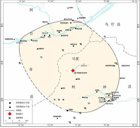 2009年2月20日18時(shí)02分,新疆維吾爾自治區(qū)阿克蘇地區(qū)柯坪縣(北緯40.42度,東經(jīng)78.42度) 發(fā)生M5.2級(jí)地震。震源深度6千米。宏觀震中位于柯坪縣木伊那克玉臺(tái)克希牧民點(diǎn)附近(北緯40°43′、東經(jīng)78°42′)。極震區(qū)烈度為Ⅵ度。該烈度區(qū)面積3600平方千米。