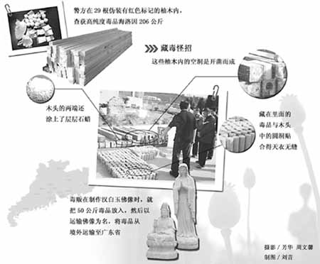 在佛像和方木中暗藏海洛因256公斤,數(shù)量如此之大的海洛因到底從何處來?根據(jù)警方的偵破資料,這批重達(dá)256公斤的毒品均來自緬甸“金三角”一個(gè)號(hào)稱“毒梟之王”的人。2005年9月22日,中緬聯(lián)合專案組與老撾警方密切合作,在老撾川壙省將“毒梟之王”韓永萬抓獲。