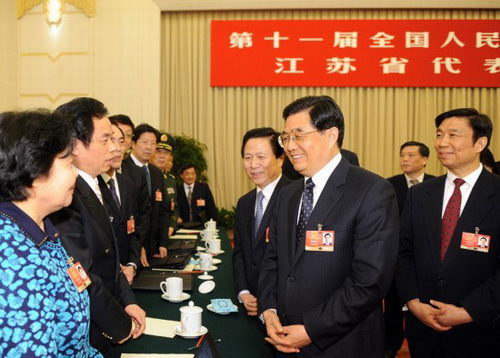 胡錦濤當(dāng)天下午來到他所在的江蘇代表團,在聽取了九位代表的發(fā)言后,胡錦濤表示,當(dāng)前的國際國內(nèi)形勢可以用兩句話來概括,一句話是挑戰(zhàn)確實嚴峻,再一句話是機遇依然存在。要進一步落實中央宏觀調(diào)控政策措施,切實做好擴內(nèi)需、保增長,調(diào)結(jié)構(gòu)、上水平,抓改革、增活力各項工作,在應(yīng)對挑戰(zhàn)中開創(chuàng)新局面,在克服困難中實現(xiàn)新發(fā)展。