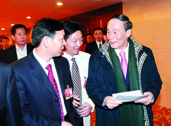 昨日下午4時許,王岐山參加完湖南代表團的討論后,黃志明將準備已久的《關(guān)于成立國有社保銀行的建議》交到王岐山的手中。“這是我一個基層代表的建議,希望對國家有所幫助,并請多多指導(dǎo)!”黃志明激動地說。“謝謝你,我會認真看的!蓖踽浇舆^黃志明的建議笑著表示。