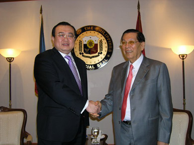 恩里萊對(duì)劉建超到任表示熱烈歡迎,并請(qǐng)劉建超轉(zhuǎn)達(dá)對(duì)吳邦國(guó)委員長(zhǎng)和賈慶林主席的問候。他表示,菲中兩國(guó)人民的友好交往歷史悠久,菲律賓視中國(guó)為友好鄰邦和重要朋友,菲方愿與中方一道推進(jìn)兩國(guó)政治、經(jīng)貿(mào)關(guān)系向前發(fā)展。