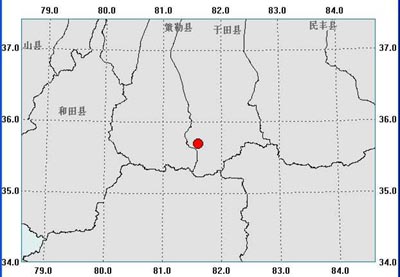 據(jù)測定,此次地震震中位于北緯 35.4°, 東經(jīng) 81.5°,目前還沒有人員傷亡和財產(chǎn)損失的報告。