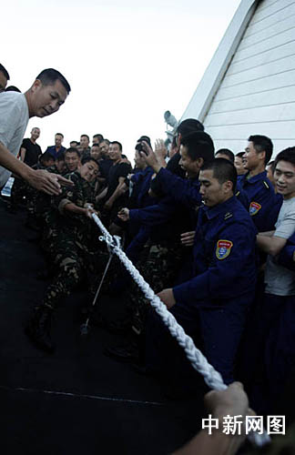 中新網(wǎng)“海口”艦3月19日電 (記者 孫自法) 3月中旬,為豐富廣大護航官兵業(yè)余生活,中國海軍艦艇編隊“?凇碧枌(dǎo)彈驅(qū)逐艦在護航之余組織舉辦第二屆甲板運動會,艦上官兵積極參與,各類比賽、訓(xùn)練項目精彩紛呈。編隊三亞起航遠赴亞丁灣、索馬里海域執(zhí)行護航任務(wù)近三個月來,廣大護航官兵身心狀態(tài)良好、士氣昂揚。