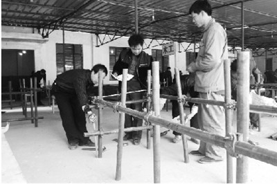 在這次考試中,砌磚工的出國試卷,是要求工人在規(guī)定的1小時30分鐘內(nèi),按照要求砌一段磚墻拔檐;模板工的試卷是要求工人在鋼筋混凝土平臺上按照要求建造一組鋼筋混凝土設(shè)備支架。
