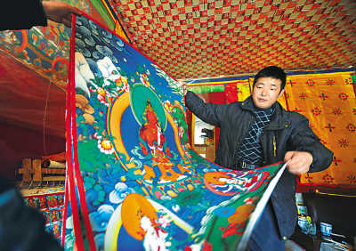 近年來,中國開展的一系列藏文化宣傳活動對藏文化的傳播也產生了很大的影響。拉姆說,自《藏謎》上演以后,很多顧客上門,點名要買楊麗萍在其中所扮演的度母為主題的唐卡。