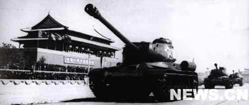 隨后,騎兵部隊過來了。在騎兵部隊的后面,防空部隊過來了,牽引炮兵部隊過來了,摩托化步兵過來了,裝甲兵部隊過來了。他們操縱著全世界第一流的武器。各種口徑的大炮和各種輕重型坦克,構成一個鋼鐵的巨流,在檢閱臺前走過。