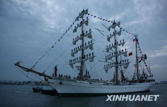 18日18時35分,墨西哥海軍“夸烏特莫克”號風(fēng)帆訓(xùn)練艦緩緩?fù)?吭谇鄭u大港二號碼頭。這是參加紀(jì)念中國人民解放軍海軍成立60周年多國海軍活動到訪的第一艘外國海軍艦艇。