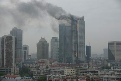 4月19日上午,南京市山西路軍人俱樂(lè)部?jī)?nèi)的中環(huán)國(guó)際大廈發(fā)生大火,大火從大樓南側(cè)底部開(kāi)始燃燒,11點(diǎn)15左右消防車(chē)才到現(xiàn)場(chǎng),至11點(diǎn)半,大樓頂部開(kāi)始著火燃燒,目前還不清楚是否有傷亡。記者發(fā)稿前,南京市全市四面八方響起了消防車(chē)的警報(bào)聲。(本網(wǎng)記者 丁國(guó)鋒)