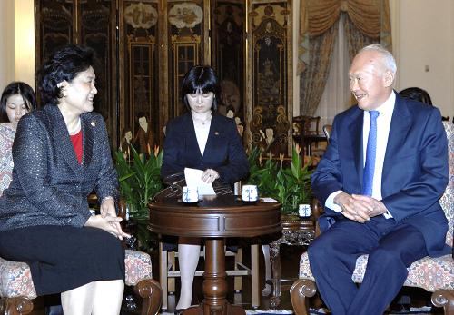 中新網(wǎng)4月26日電 正在新加坡訪問的中國國務(wù)委員劉延?xùn)|25日在新加坡總統(tǒng)府會(huì)見了新加坡內(nèi)閣資政李光耀。