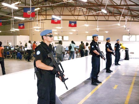 中新網(wǎng)4月27日電 據(jù)公安部網(wǎng)站消息,在聯(lián)合國駐海地穩(wěn)定特派團(tuán)和海地政府的共同努力下,海地大選第一輪議會(huì)選舉如期順利舉行。中國第七支駐海地維和警察防暴隊(duì)承擔(dān)了最重要的全國選舉計(jì)票中心安全保衛(wèi)任務(wù)和選票押運(yùn)工作。