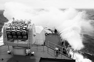 ——2002年5月至9月,中國海軍艦艇編隊首次環(huán)球航行,共穿越15條著名海峽水道,橫跨68個緯度,6次穿越赤道,訪問10個國家和港口,總航程33000海里。至此,中國海軍艦艇編隊壯游三大洋。同時,一個新的重大轉折也在悄然完成。軍艦走出國門,開始從單純航渡出訪,轉變?yōu)檫h航訓練結合出訪,甚至是以訓練為主。征服遠海大洋的能力,體現著一支現代海軍的訓練水平。1980年10月,南海艦隊艦艇編隊,首次出巴林塘海峽到太平洋遠航訓練。經過海峽西口的“魔鬼三角洲”時,因缺乏經驗,一艘軍艦上的10名艦員被巨浪打下大海,2人遇難。這是人民海軍走向大洋付出的血的代價。此后,海軍遠航編隊經驗越來越豐富,不畏暗礁險灘,勇闖驚濤駭浪。在南中國海,戰(zhàn)艦遭遇狂風巨浪,重達1噸的鐵錨被風浪掀上甲板;在太平洋,編隊遭遇持續(xù)半個月之久的大風浪,滿載排水量為數萬噸的補給艦強烈震顫,逆風頂浪,頑強前進;在比斯開灣,編隊遭遇12級大風,艦體左右搖擺近30度,艦艉螺旋槳多次露出海面……20多年過去,人民海軍遠航訓練已經發(fā)展成為一種常態(tài):每年有上百艘次水面艦艇駛向遠海大洋,晝夜連續(xù)航行從數百海里到數千海里,潛艇水下隱蔽待機由數十天到數月,航空兵長途奔襲由一般氣象條件到復雜氣象條件,上千艘次艦機在太平洋海域進行多課目訓練。