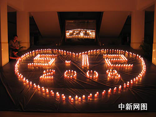 中新網(wǎng)隴南5月12日電 (記者 劉薛梅 張通飛) 11日晚上8點(diǎn),隴南市第二中學(xué)校園內(nèi),660名學(xué)生點(diǎn)燃蠟燭組成了一個(gè)“燭光大道”,校門(mén)正前方的多媒體教室內(nèi),300支蠟燭構(gòu)成了一個(gè)巨大的心形圖案,里面用蠟燭寫(xiě)著“512”、“2008”。這里正在舉行一場(chǎng)詩(shī)歌朗誦會(huì),紀(jì)念地震一周年。