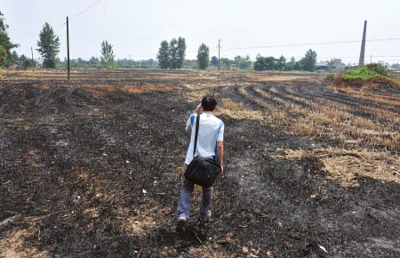 “這個(gè)村地里留下的秸稈,不敢說(shuō)是100%,至少90%都是燒了的。”一正在地里插秧的村民告訴記者,幾天前他就將地里的秸稈全部燒了,清理完畢后,在地里灌上水準(zhǔn)備插秧!笆崭顧C(jī)收完麥子后,還有半茬樁子留在地里,弄起來(lái)太麻煩,一把火燒了干凈!