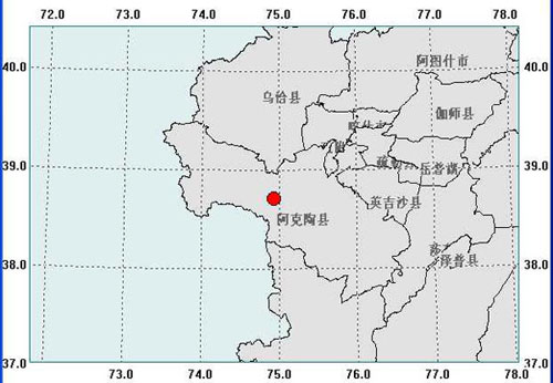 據(jù)測(cè)定,此次地震震中位于北緯 38.7°, 東經(jīng) 74.9°。目前還沒(méi)有人員傷亡和財(cái)產(chǎn)損失的報(bào)告。