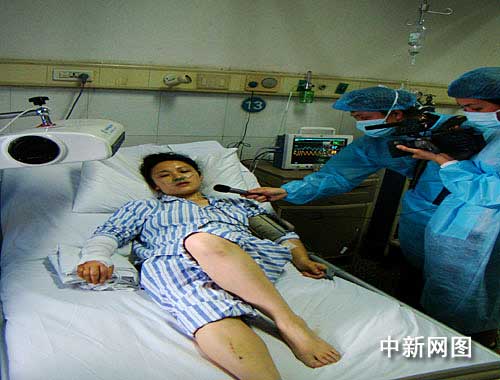 躺在病床上的谷萬芳年齡約三十歲,神情憔悴,眼睛里還存留著一絲劫后余生的驚恐和慌亂。記者看到,谷萬芳的雙上肢受傷較嚴(yán)重,右手臂上纏繞著厚厚的繃帶,左手臂也無法動(dòng)彈;雙腿裸露在外的皮膚上還能看見一尺長劃傷和青紫傷痕。