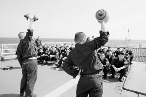 護航編隊艦艇的擴音器、對講機里,幾乎每天都能傳出戰(zhàn)斗號角般的聲音。我們的官兵,就是在如此高度緊張的戒備氛圍中度過一百多天護航生活的。