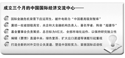 中國國際經(jīng)濟(jì)交流中心(以下簡稱“國經(jīng)中心”)正是在此背景下應(yīng)運而生,目標(biāo)就是辦成民間智庫,融匯高層、權(quán)威資源,進(jìn)行前瞻性、戰(zhàn)略性、全局性研究,為公共政策提供智力支撐,為企業(yè)跨國經(jīng)營提供咨詢服務(wù)。