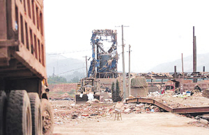 進入爆炸現場,偌大的廠區(qū)幾乎被夷為平地,已經看不到一間完好的房子,到處是瓦礫和木屑,以及破裂變形的運輸車輛和職工宿舍里散落的臉盆、牙缸等。周圍的樹木全被削去了樹葉而變得光禿禿的,仿佛冬天一般肅殺。