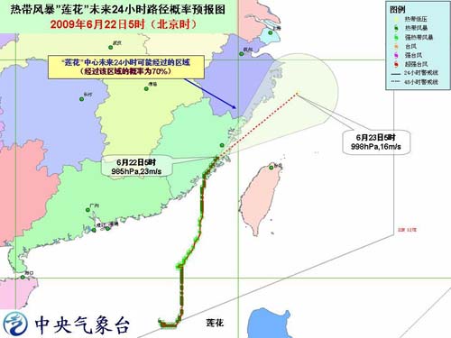中新網(wǎng)6月22日電 中央氣象臺今天早晨六時(shí)發(fā)布臺風(fēng)消息:今年第3號熱帶風(fēng)暴“蓮花”(LINFA)已于昨天晚上8時(shí)30分前后在福建晉江東石鎮(zhèn)登陸,登陸時(shí)中心附近最大風(fēng)力有9級(23米/秒)!吧徎ā钡顷懞笙虮逼珫|方向移動。今天早上5時(shí)風(fēng)暴中心位于福建省莆田市境內(nèi),就是北緯25.5度,東經(jīng)119.1度,中心附近最大風(fēng)力有9級(23米/秒)。