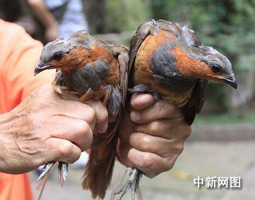 當(dāng)日下午,記者見到了其中的2只竹雞。它們雖然被放在布袋里,但野性十足,“噗”、“噗”、“噗”地跳個(gè)不停。用繩子拴著放在地上,不停地飛騰。捉在手上,它就用力掙扎著,尖尖的趾還把手指扎出了血。