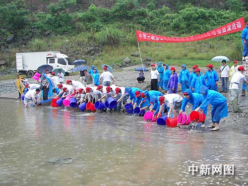 中新網(wǎng)宜昌6月30日電(記者 郭曉瑩)三峽開(kāi)發(fā)總公司中華鱘研究所29日在長(zhǎng)江宜昌江段(江南櫻桃園碼頭)舉行了2009年度第二次中華鱘放流活動(dòng),這也是該所第49次放流中華鱘。