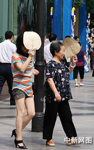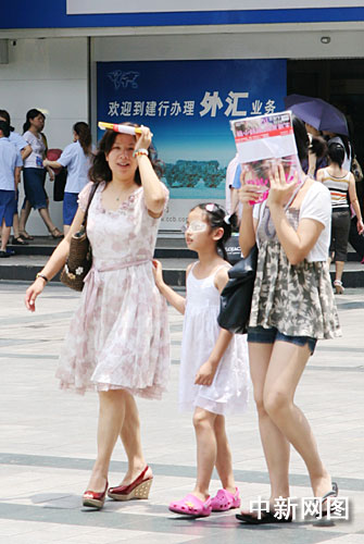 正午時分,熱浪襲人,路上行人稀少。記者在街頭看到,偶爾經(jīng)過的行人都盡量走在樹蔭下或可遮陽的地方,太陽傘、墨鏡、帽子齊齊上陣,“全副武裝”以減少太陽直射的灼熱感。