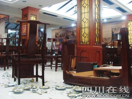 餐飲店內(nèi)一片狼藉