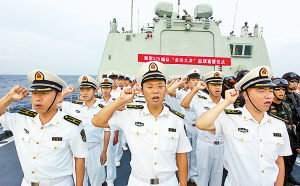 宣誓后,編隊(duì)指揮員、東海艦隊(duì)副司令員王志國代表全體官兵表示:“要以實(shí)際行動,為維護(hù)國家利益貢獻(xiàn)力量!為人民軍隊(duì)添光彩!為偉大祖國爭榮譽(yù)!”
