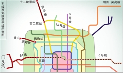 據(jù)了解,S1線東起西四環(huán)定慧橋北五路,西到門頭溝,進(jìn)入門頭溝后會分叉為兩條線運(yùn)行。