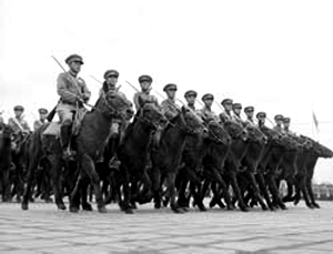 國(guó)慶5周年閱兵 騎兵方隊(duì)最后一次受閱。1954年國(guó)慶閱兵,海陸空三軍受閱部隊(duì)38個(gè)方隊(duì)、4個(gè)飛行梯隊(duì),共10384人。其中騎兵編成了6個(gè)方隊(duì)。
