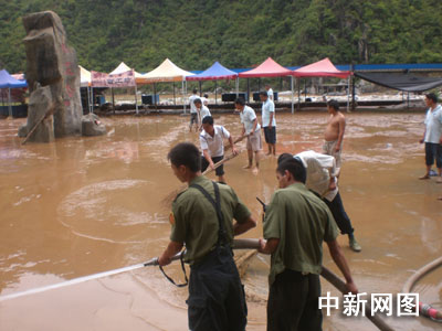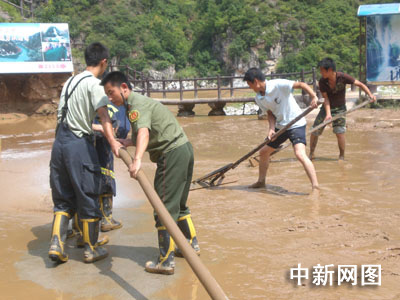一到現(xiàn)場(chǎng),消防隊(duì)員就立即鋪設(shè)水帶。在專門(mén)消防器材的幫助下,消防隊(duì)員開(kāi)始對(duì)廣場(chǎng)淤泥進(jìn)行清理。經(jīng)過(guò)艱苦奮戰(zhàn),通往景區(qū)的道路被打通,布滿淤泥的桃花谷廣場(chǎng)終于煥然一新,又露出了昔日干凈美麗的“面龐”。 完