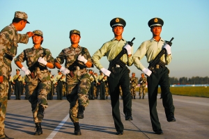 位置:女民兵方隊隊列排頭兵