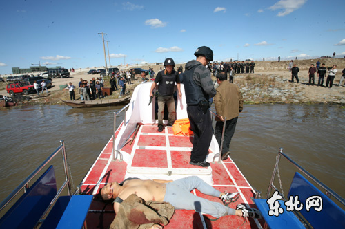 9月8日早6時許,肇源縣肇源鎮(zhèn)“頭道汀”江灣里的漁民唐景芳報案稱,警察布控抓捕的通緝犯在他的捕魚窩棚找飯吃。緝捕指揮部立即調(diào)集警力趕赴發(fā)現(xiàn)王犯蹤跡的現(xiàn)場,10時許,緝捕組在肇源鎮(zhèn)松花江的一處江心島附近發(fā)現(xiàn)犯罪嫌疑人王厚軍。此時,吉林省松原警方也已在江對岸部署了大量警力。經(jīng)多次喊話、鳴槍警告無效,王逃入江中,大慶市公安局的刑警、特警涉水追捕,當(dāng)時水已經(jīng)齊胸深,王犯無處可逃,仍然拒捕,并舉槍向緝捕民警打了一槍,被大慶市公安局特警當(dāng)場擊斃。隨后,在江中找到哈爾濱鐵路公安局民警被搶的“77式”手槍,發(fā)現(xiàn)槍膛中已經(jīng)擊發(fā)的子彈卡殼。