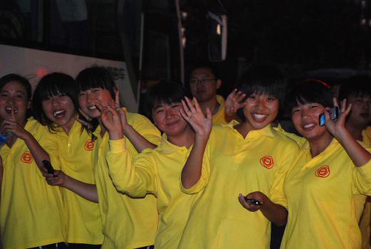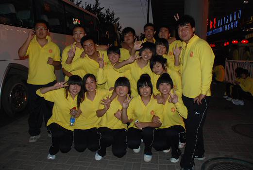 一陣快樂的笑聲引起了記者的注意,原來是一群年輕人在相互用手機拍照留念。他們是來自北京市汽車工業(yè)高級技術(shù)學(xué)校的25名學(xué)生。參加大型活動對他們來說一點都不陌生,因為他們經(jīng)歷過今年8月8日在“鳥巢”及奧林匹克景觀大道舉行的“三萬人演太極破世界紀錄”的活動。“8月8日的活動結(jié)束后,我們就開始準備國慶舞蹈了。大家用了3、4天就學(xué)會了!辈贿^接下來,同學(xué)們放棄暑假,用了整整一個月來精益求精。這些90后、80后的大孩子們開朗熱情,對于第一次實地演練檢驗一個多月來的努力成果顯得信心十足興奮不已,他們說,雖然在室外頂著日頭訓(xùn)練時挺辛苦,但是大家都覺得“特別自豪,特別快樂”,因為“我們能代表北京、代表中國向全世界展示我們國家的繁榮昌盛,這是非常難得的經(jīng)歷”。(記者 劉莉)