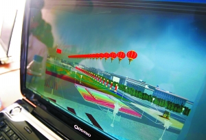 昨天下午1時許,位于密云的群眾游行訓(xùn)練場。參加演練的群眾還未到場,一群技術(shù)人員卻已經(jīng)忙碌開了:指揮臺上架起的兩排筆記本電腦,屏幕上一個個惟妙惟肖的“動畫人”排成的方陣,正邁著整齊的步伐,依次通過酷似天安廣場的虛擬場景,這場面乍看上去很像是個逼真的電子游戲。