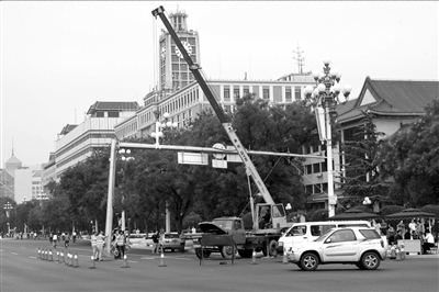 為保證來(lái)自四面八方的彩排隊(duì)伍能順利入場(chǎng)、退場(chǎng),昨天下午,相關(guān)部門(mén)對(duì)彩排隊(duì)伍必經(jīng)路段上的橫臂式信號(hào)燈進(jìn)行暫時(shí)拆除,因?yàn)榇祟?lèi)信號(hào)燈具有指揮四面交通的功能,體積稍顯龐大,在有大規(guī)模的游行隊(duì)伍通過(guò)時(shí),會(huì)造成不便。