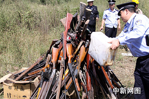 為給國慶營造平安和諧的社會環(huán)境,平頂山市公安局近期開展了集中收繳非法槍支彈藥、爆炸物品統(tǒng)一行動,共收繳了609支民用槍支,以及內(nèi)保、押運單位淘汰的60支軍用槍支。