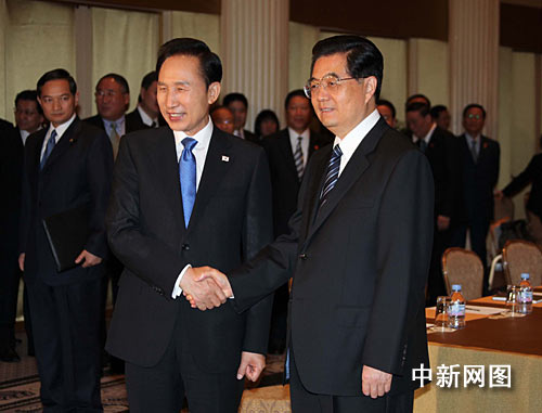 胡錦濤說,很高興與李明博在此見面。借此機(jī)會(huì),他愿與李明博就雙邊關(guān)系和共同關(guān)心的其他問題交換意見。
