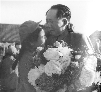 這位女文工團(tuán)員給毛澤東獻(xiàn)上鮮花、握手后,突然撲到毛澤東懷里,緊緊擁抱著,情不自禁地淚流滿面。那一刻,在場(chǎng)的所有人全愣住了。被打動(dòng)的毛澤東閉上眼睛,旁邊的呂厚民立即反應(yīng)過(guò)來(lái),按動(dòng)快門,把這一感人的場(chǎng)面拍了下來(lái)。