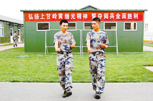 雖然倆人很默契,但生活中也有不合拍的時(shí)候。有一次,從小就喜歡打籃球的武龍,想利用課余時(shí)間和戰(zhàn)友們來一場比賽。易治安一聽急了,怕他因劇烈運(yùn)動(dòng)而受傷影響訓(xùn)練,趕緊跑步到球場把他拉了回來。武龍一生氣,心想你不讓我玩球,訓(xùn)練時(shí)看我不給你難堪?果然,在后來的幾次測試中,武龍成績險(xiǎn)些不及格,排面標(biāo)齊一次不如一次。在方隊(duì)形勢分析會上,易治安沒有批評武龍,而是把責(zé)任攬?jiān)诹松砩,主?dòng)查找自己的原因。武龍聽后慚愧地低下了頭,后來他找班長主動(dòng)承認(rèn)錯(cuò)誤。