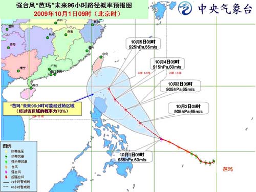 中新網(wǎng)10月1日電 據(jù)中國(guó)氣象局網(wǎng)站消息,今年第17號(hào)臺(tái)風(fēng)“芭瑪”于10月1日上午在菲律賓以東洋面加強(qiáng)為強(qiáng)臺(tái)風(fēng),1日9時(shí)其中心位于菲律賓馬尼拉東偏南方大約1110公里的洋面上,就是北緯12.0度、東經(jīng)130.9度,中心附近最大風(fēng)力有15級(jí)(50米/秒),中心最低氣壓為935百帕。