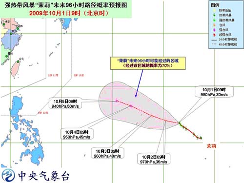 預(yù)計(jì),“茉莉”將以每小時(shí)15~20公里的速度向西偏北方向移動(dòng), 強(qiáng)度繼續(xù)加強(qiáng),將于1日晚些時(shí)候加強(qiáng)為臺(tái)風(fēng),2日有可能加強(qiáng)為強(qiáng)臺(tái)風(fēng)。