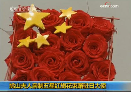 崔天凱還透露了一個小細節(jié):鳩山夫婦9日抵達北京時,他代表中方去機場迎接,意外收到一份首相夫人親手制作的禮物。“他們二位一出機艙門,我就看到首相夫人手里拿了一束花,下來后她就交給我,說這是16朵花組成的,上面還有五顆星,就是中國國旗的圖案。”