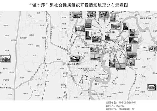 2000年開(kāi)始,謝才萍利用自己特殊的家庭背景和社會(huì)關(guān)系,在渝中區(qū)四處開(kāi)設(shè)賭場(chǎng),聚眾賭博。