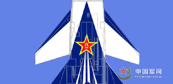 殲-10表演機(jī)軍徽由紅黃兩色組成,“八一”和五角星的邊框?yàn)辄S色,其余部分為紅色,噴涂在機(jī)身腹部,共1處(見圖5、6)。