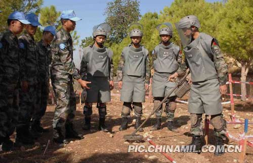 我第六批赴黎巴嫩維和工兵營以成都軍區(qū)某集團軍工兵團為主組成。該團曾參加過中越邊境大掃雷,3次受派進行人道主義援外排雷,已成功擔(dān)負(fù)3批赴黎維和掃雷任務(wù),掃雷排爆經(jīng)驗豐富,先后發(fā)現(xiàn)和排除未爆彈及地雷五千余枚,并創(chuàng)造了“零傷亡”的出色成績。